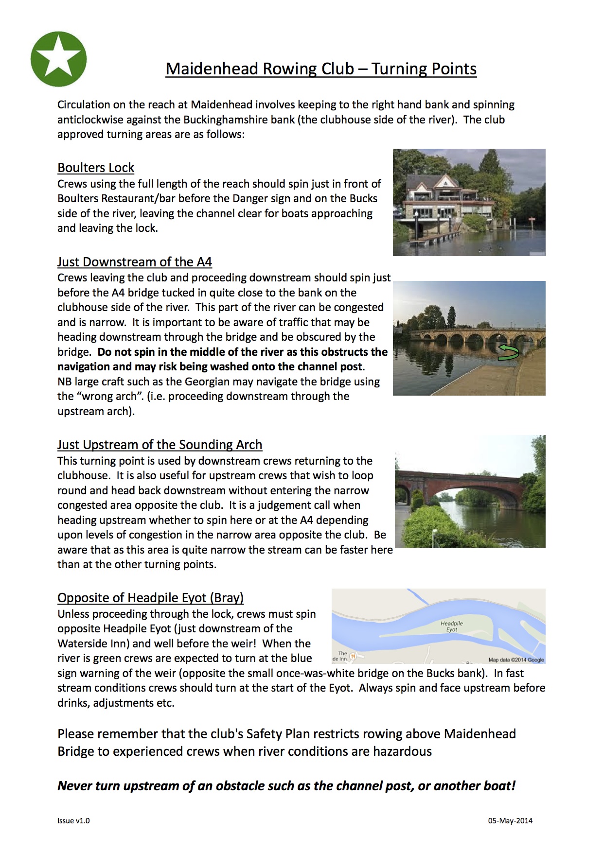 Rowing safely at Maidenhead – Induction guidelines